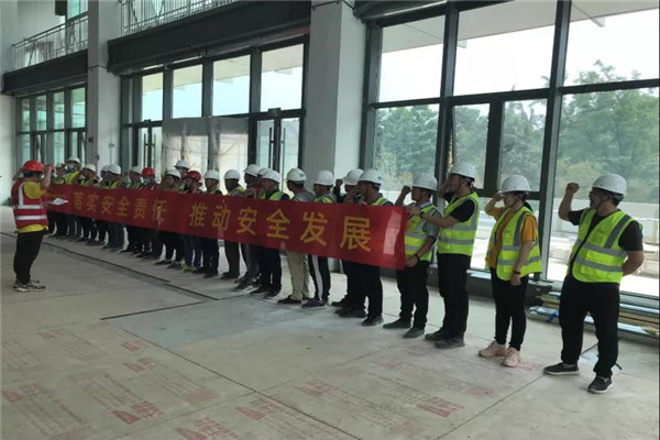 6月1日,公司安全质量部在智能交通产业园组织开展“安全生产月”启动仪式,组织项目施工人员进行安全宣誓及签名活动,同时在各施工现场悬挂安全生产月主题标语条幅和制作安全警示展板,有效地提升了现场可视化安全管理水平。