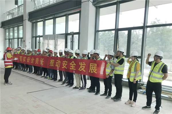 启动仪式紧紧围绕“落实安全责任,推动安全发展”活动主题,宣读了开云电子_开云电子(中国)股份“安全生产月”活动实施方案和节点计划。组织施工班组长、项目全体管理人员分别进行了庄严的安全宣誓。