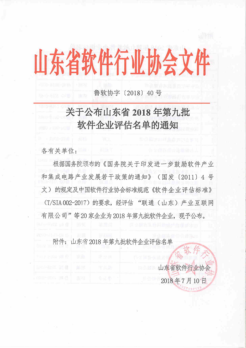 近期,根据国务院颁布的《国务院关于印发进一步鼓励软件产业和集成电路产业发展若干政策的通知》的规定及中国软件行业协会标准规范《软件企业评估标准》的要求,经过山东省软件协会的严格审查,开云电子_开云电子(中国)通过了软件企业认定的严格评审程序,被授予山东省2018年第九批软件企业。
